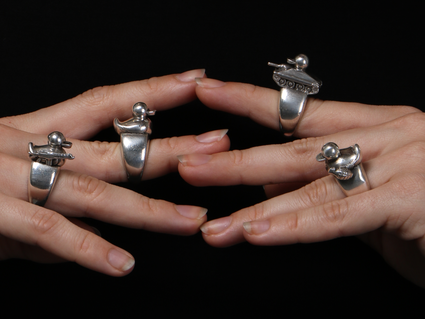 Ducks in a line is a collection of silver rings inspired by order and chaos